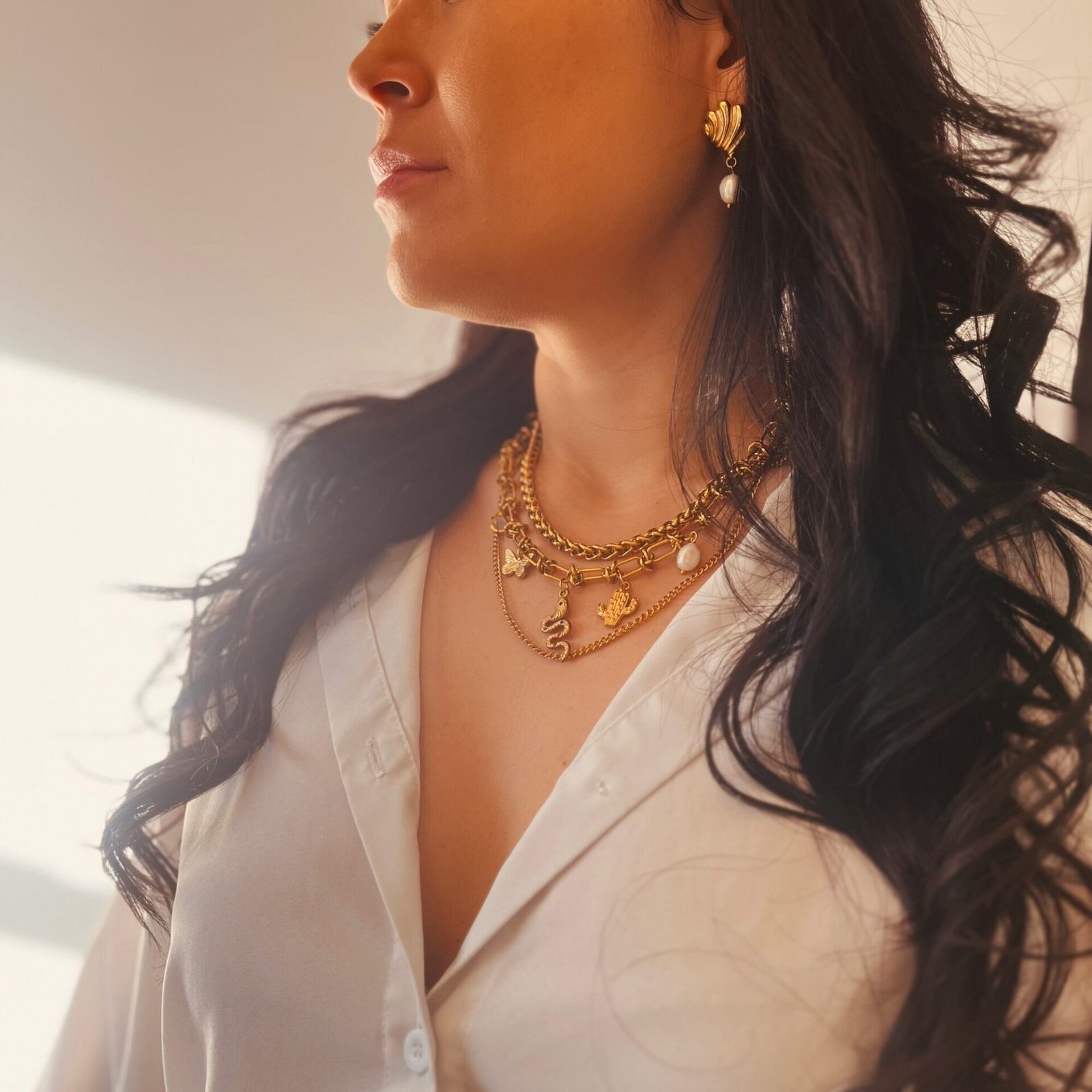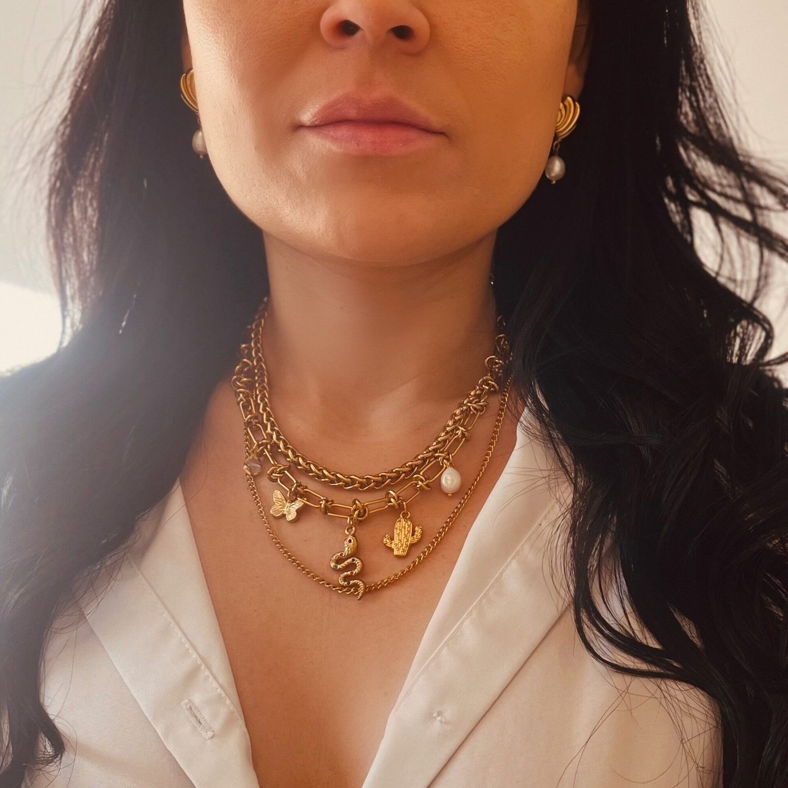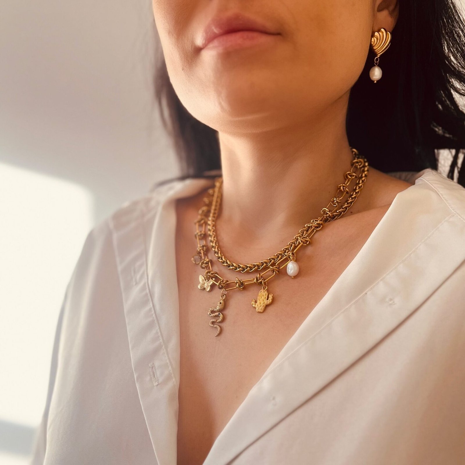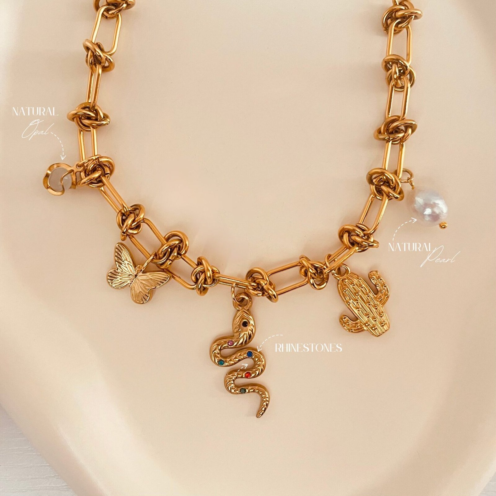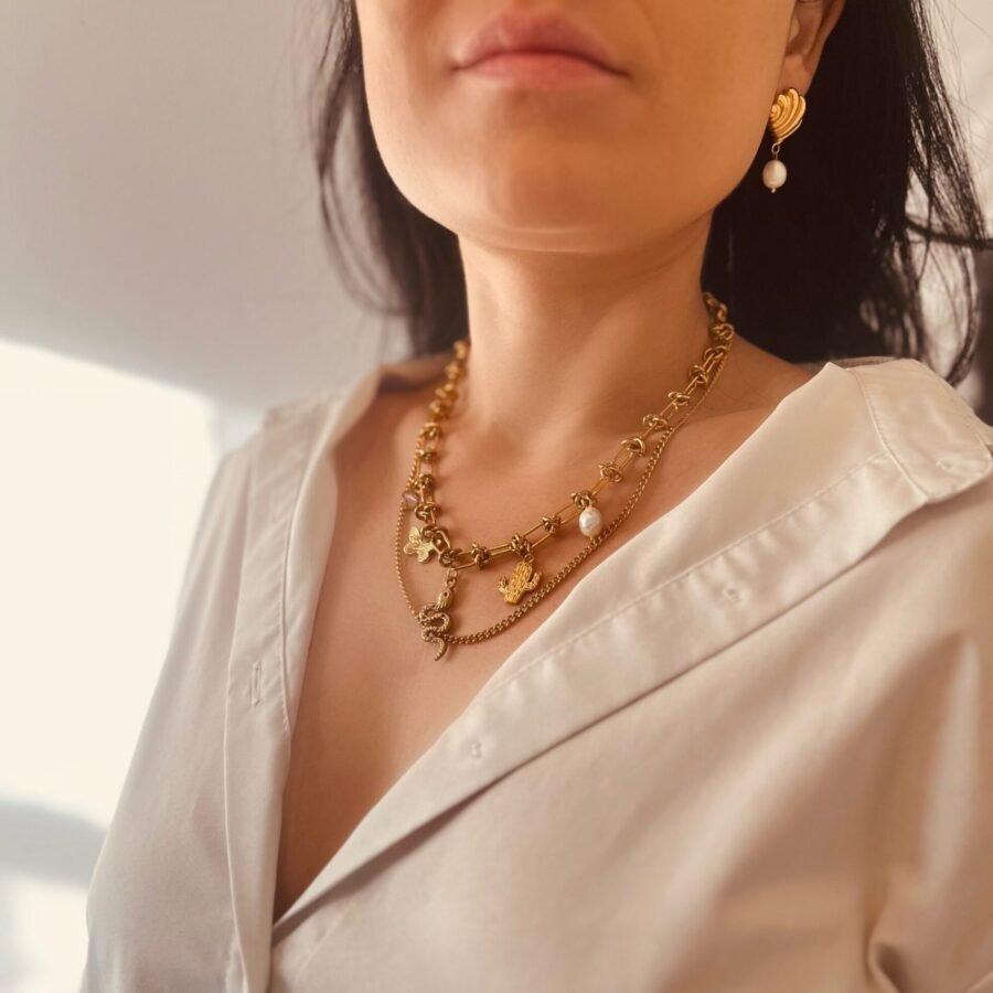 - Charm necklace – length adjustable from 17.7′ to 19.6′